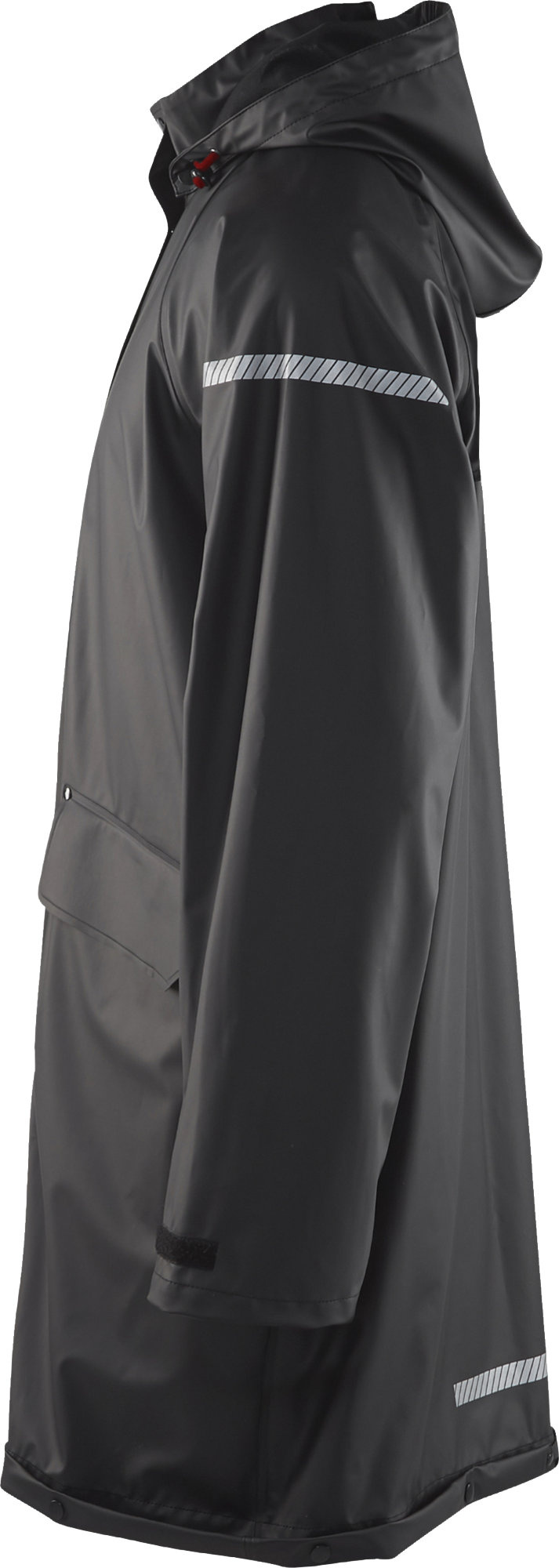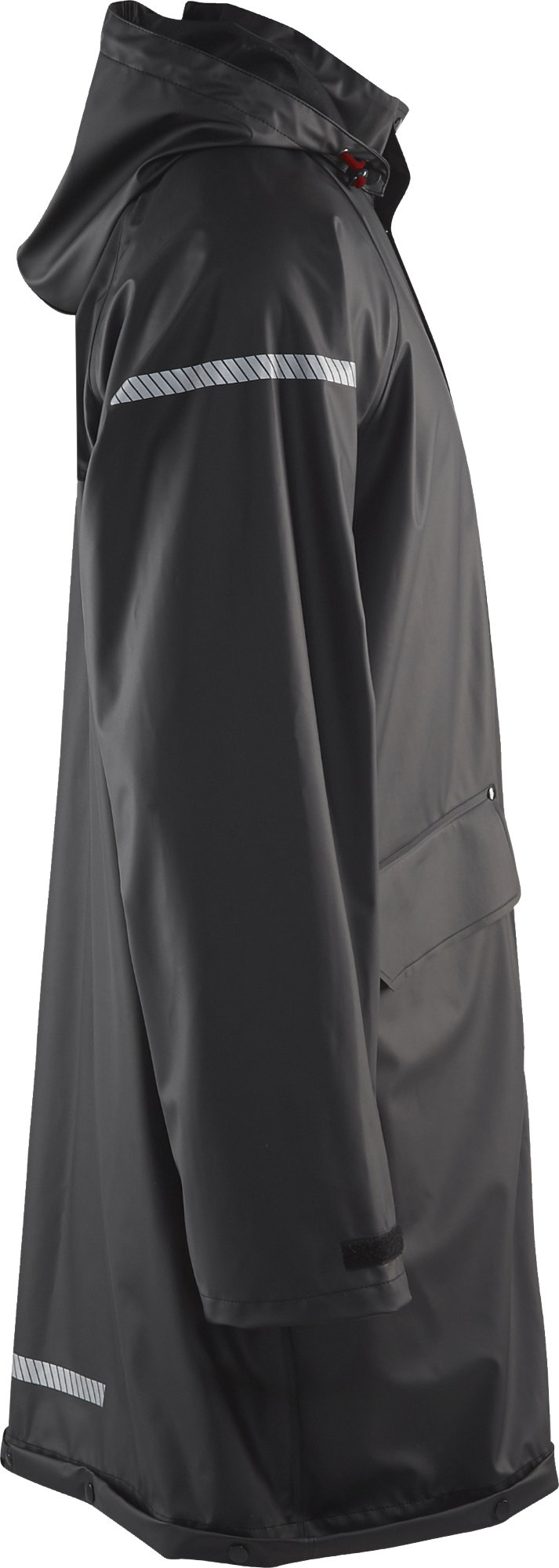 Regenjas 4301 van het merk Blaklader met afneembare capuchon. Beschikt gelaste naden en een stevige ritssluiting voorzien van windflap met Velcro.