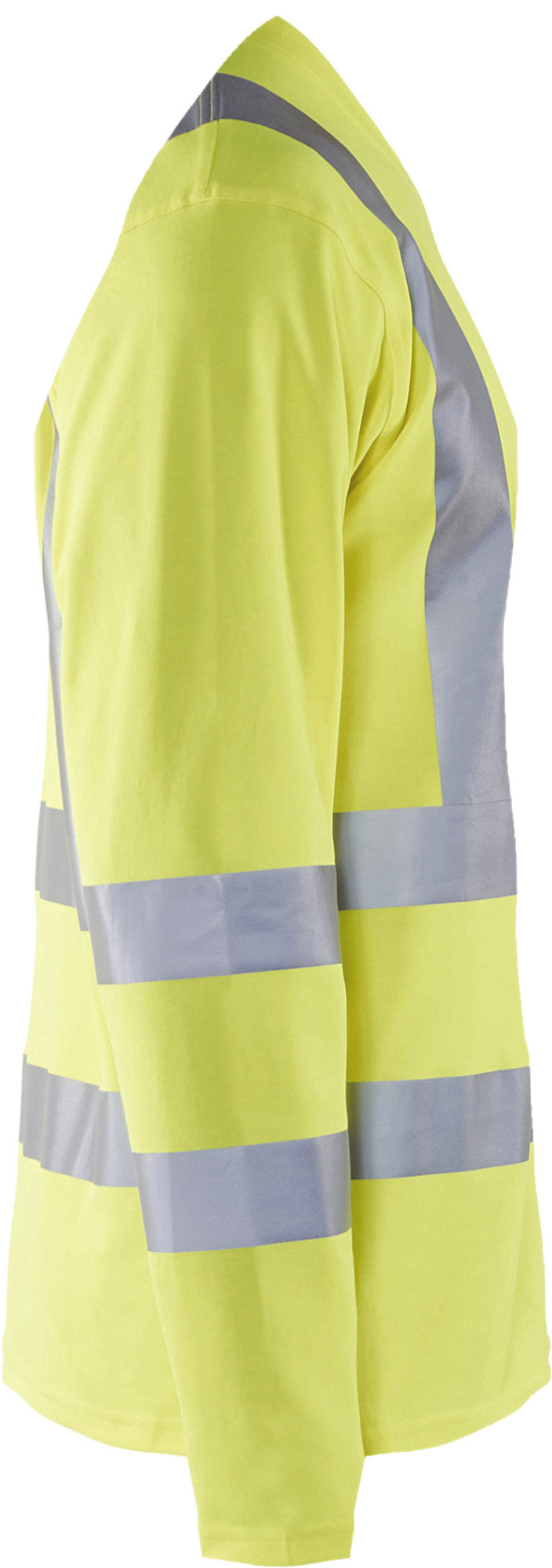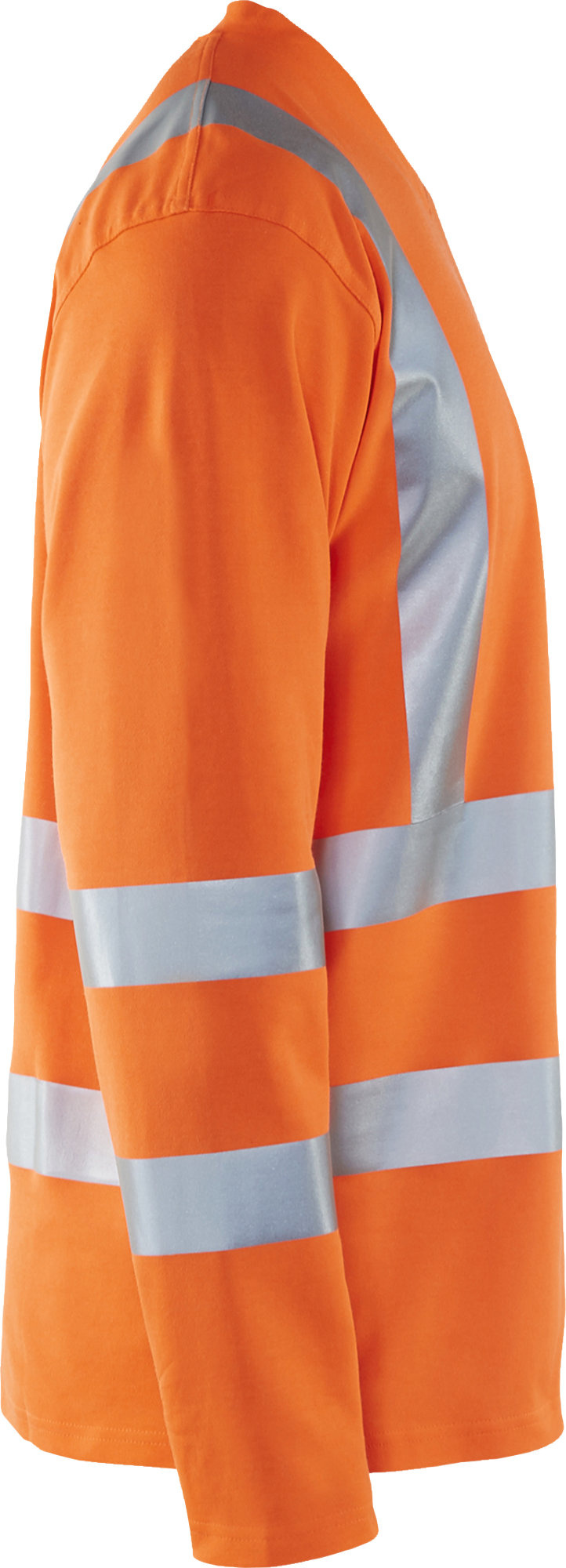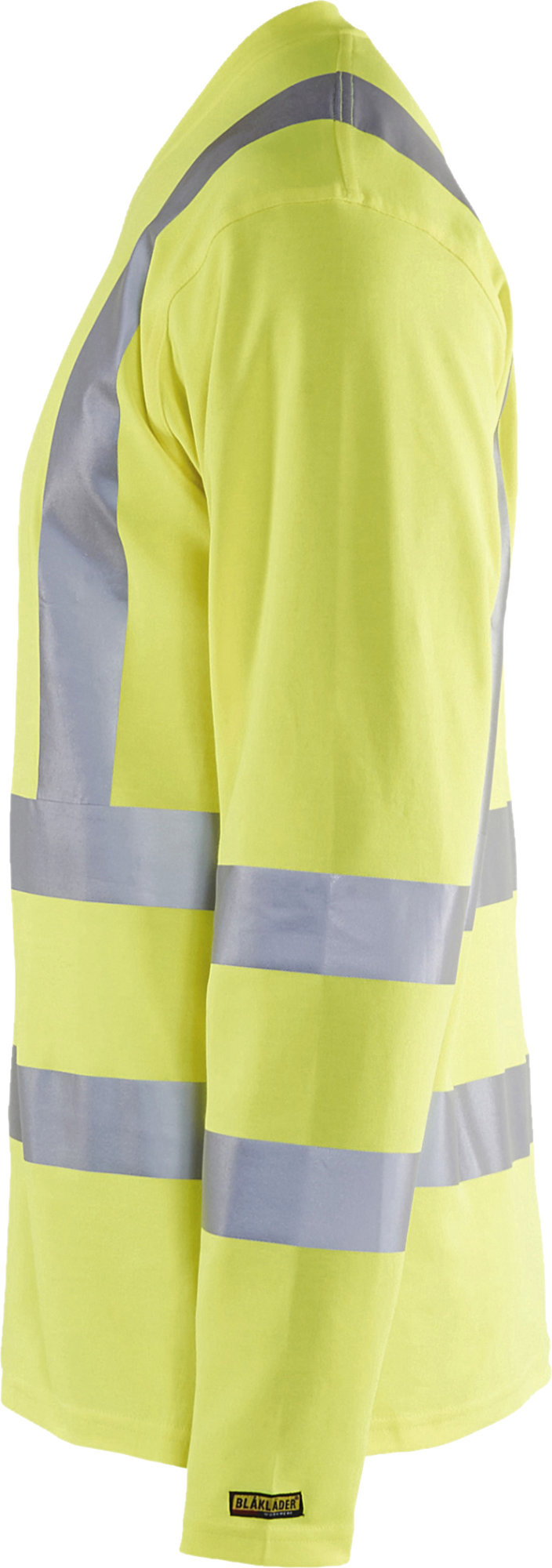 High Vis T-shirt lange mouw, met UV-stralingsbescherming en reflecterende striping. Katoenen binnenzijde, polyester buitenkant. Blaklader model 3381.
