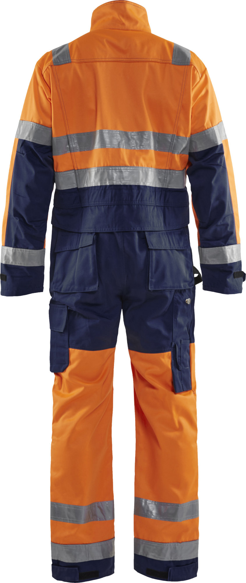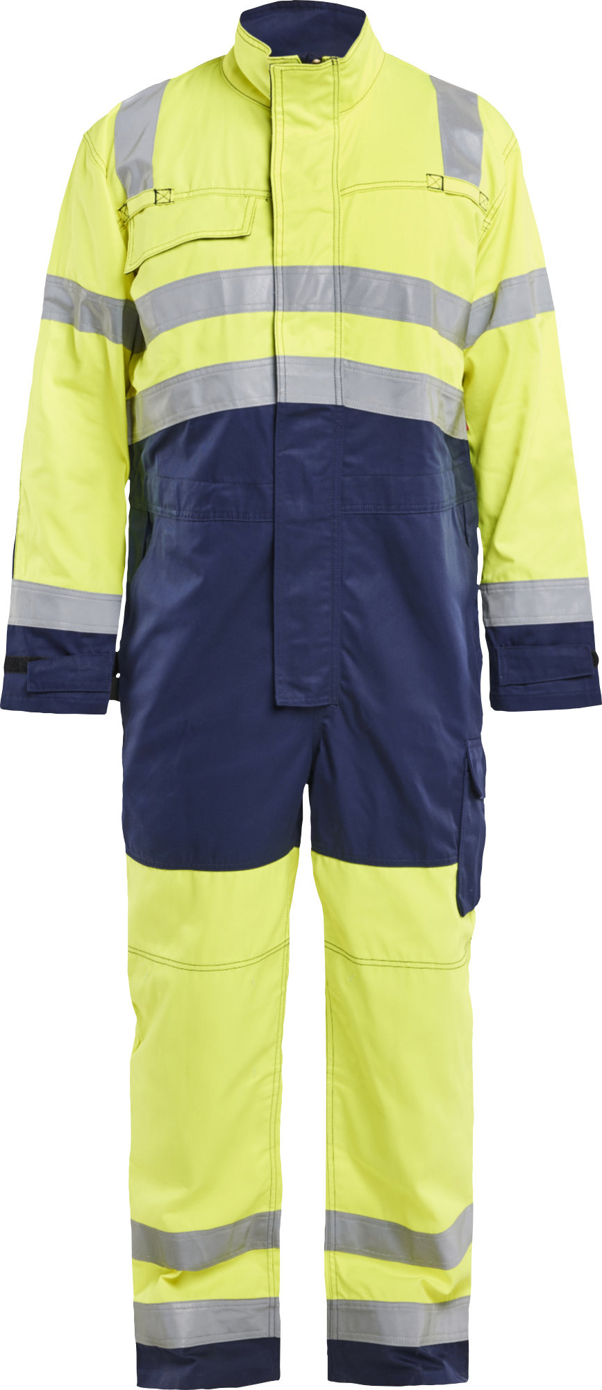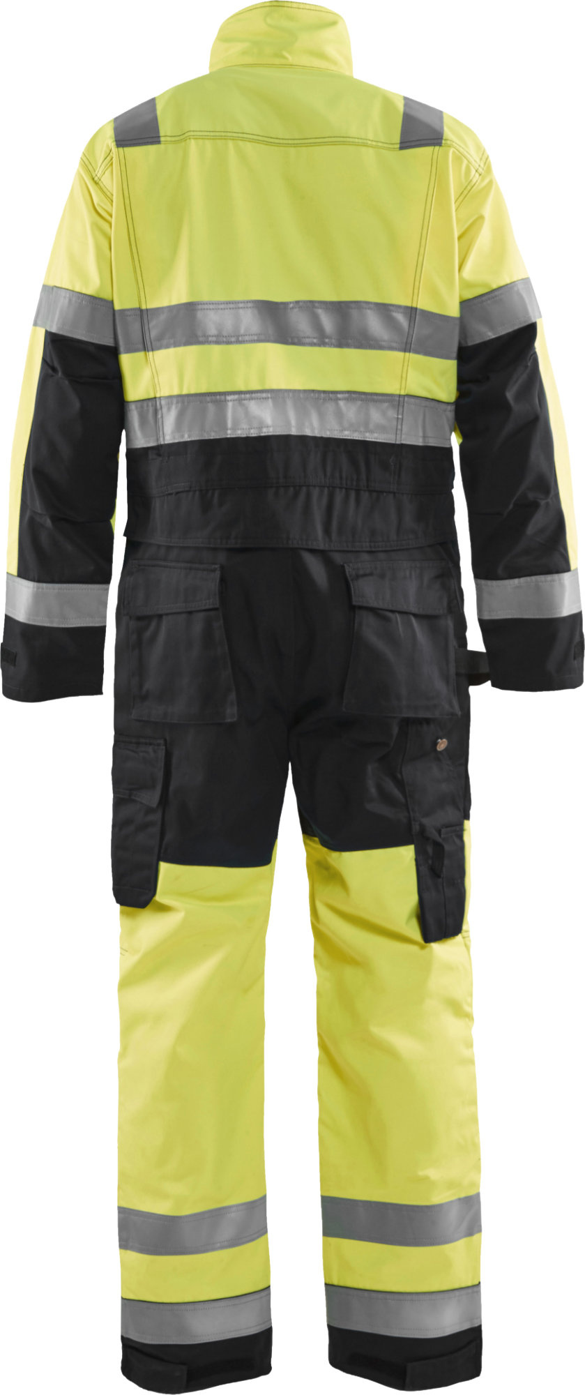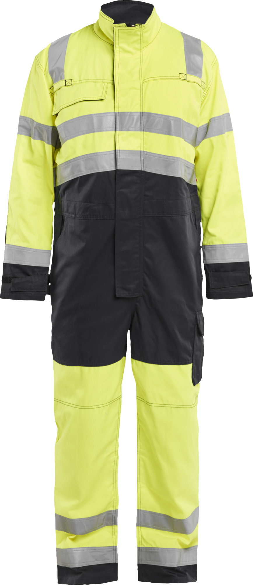 High-Visibility overall met striping van het merk Blaklader (6373). Zakken voor kniebeschermers aan de binnenkant aanwezig.