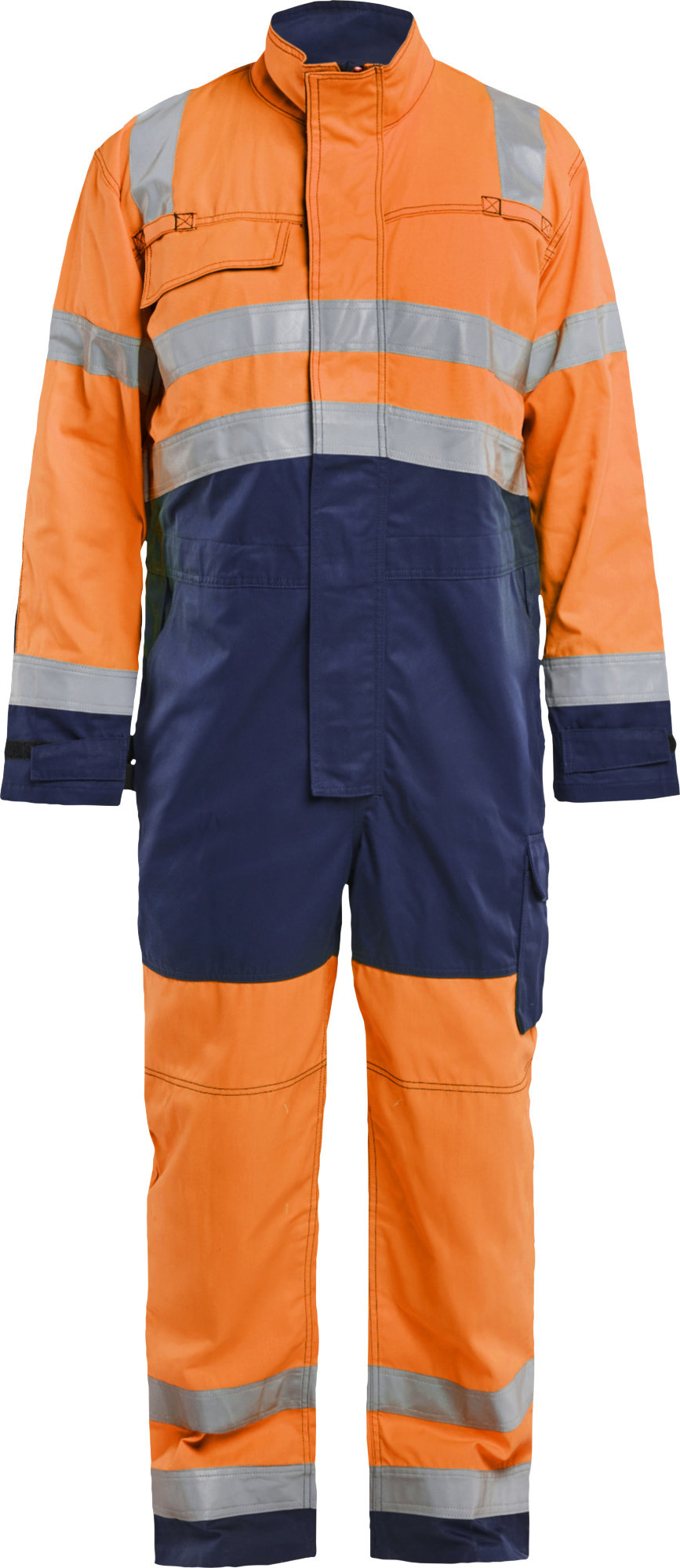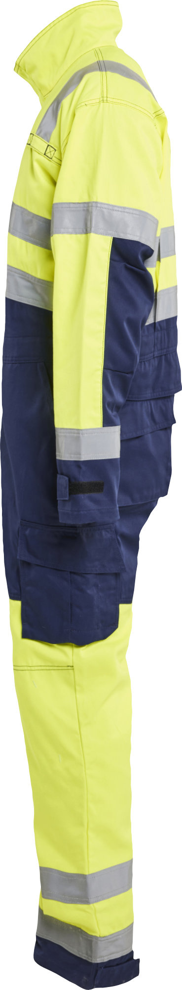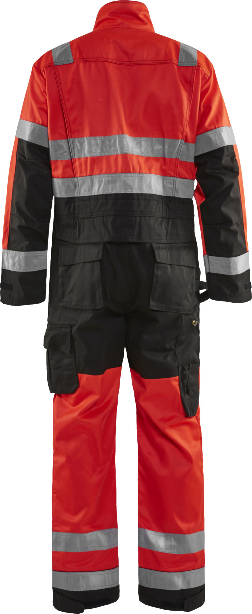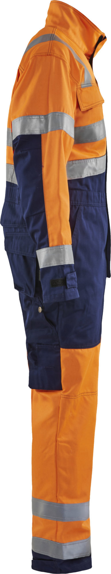 High-Visibility overall met striping van het merk Blaklader (6373). Zakken voor kniebeschermers aan de binnenkant aanwezig.