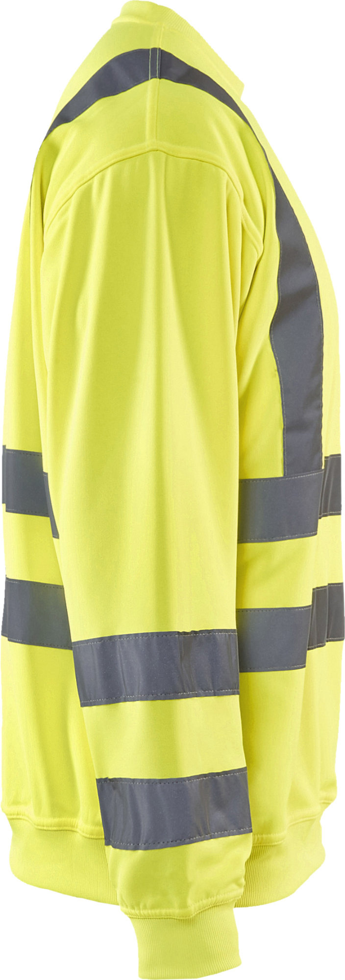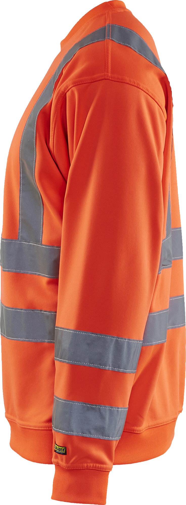 Sweatshirt High Vis met striping van Blaklader, model 3341. Met een versterkte kraag en een elastische boord aan de mouw. Beschikbaar in geel, oranje en rood.