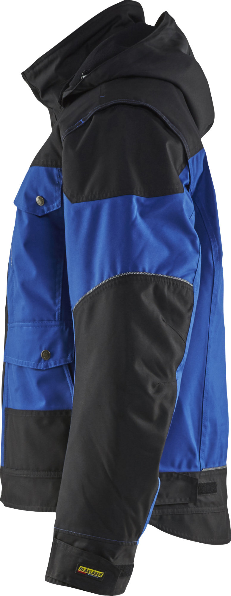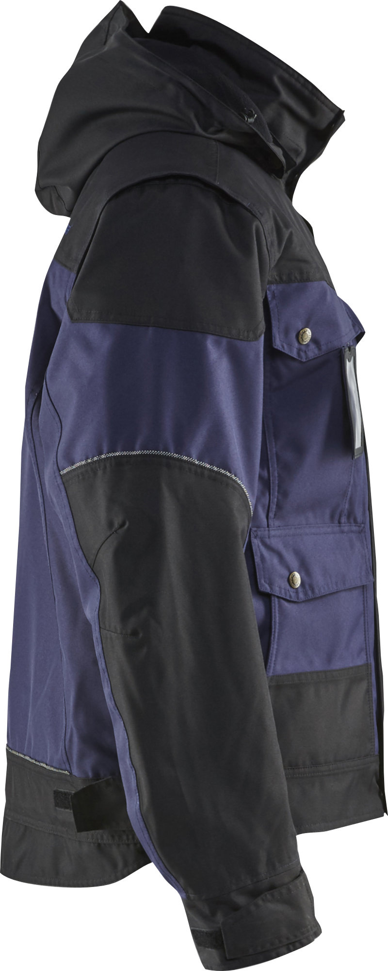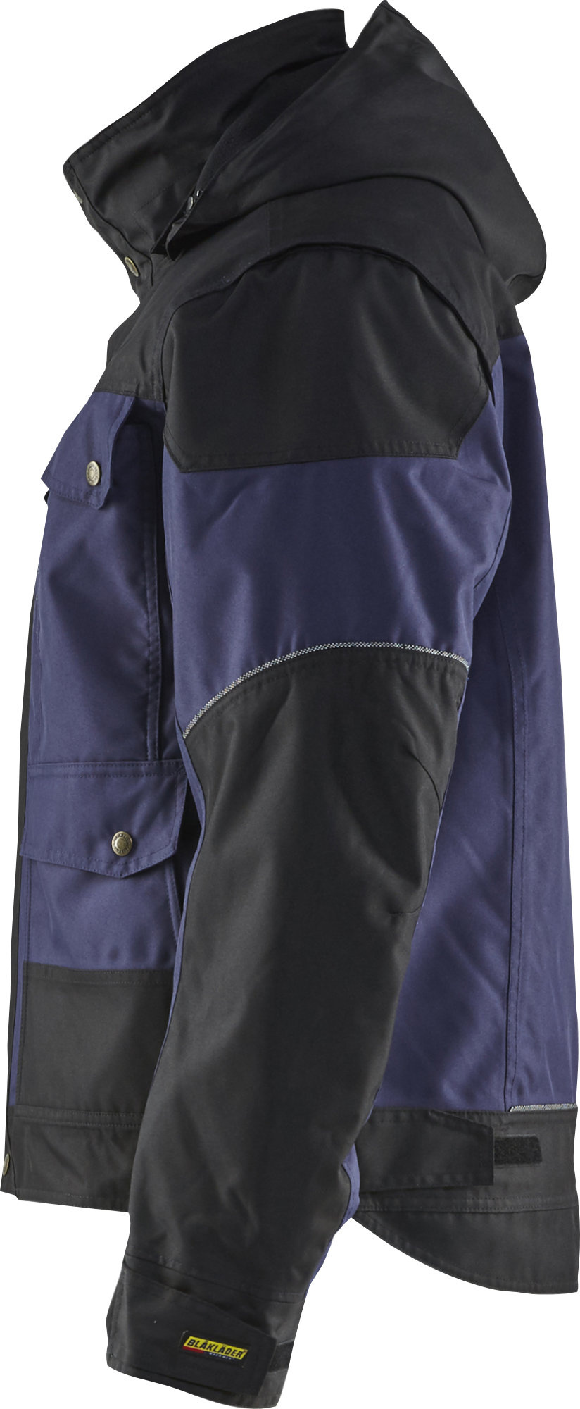 Winterjas wind- en waterdicht met getapete naden van het merk Blaklader model 4886 . Beschikt over een verstelbare, afneembare capuchon en fleece in de kraag.