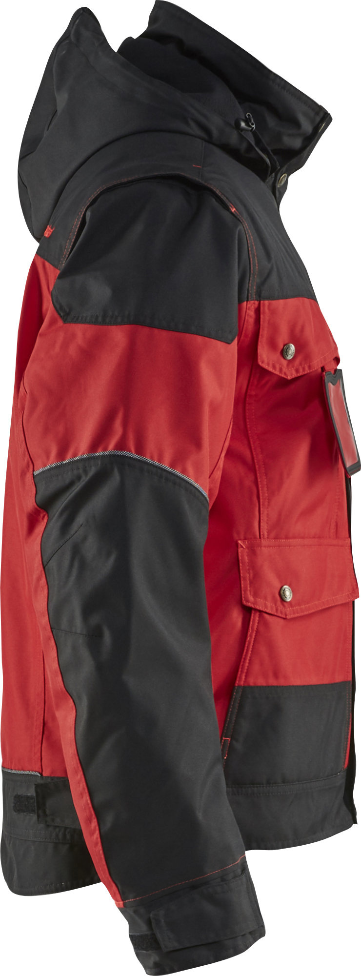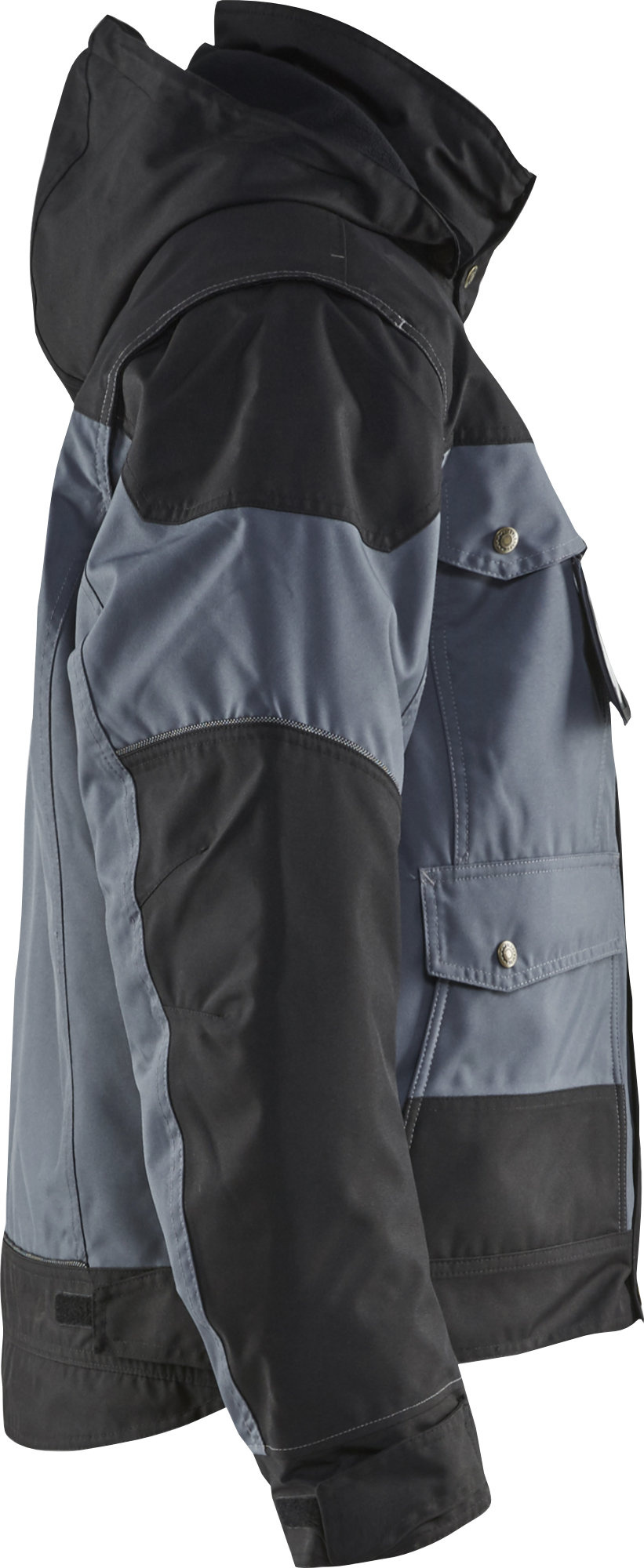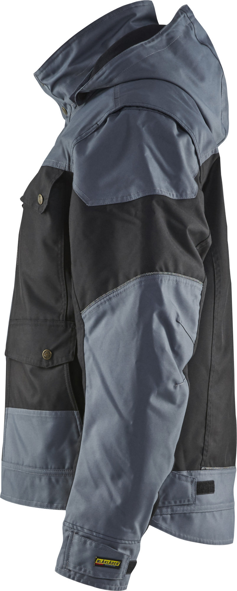 Winterjas wind- en waterdicht met getapete naden van het merk Blaklader model 4886 . Beschikt over een verstelbare, afneembare capuchon en fleece in de kraag.